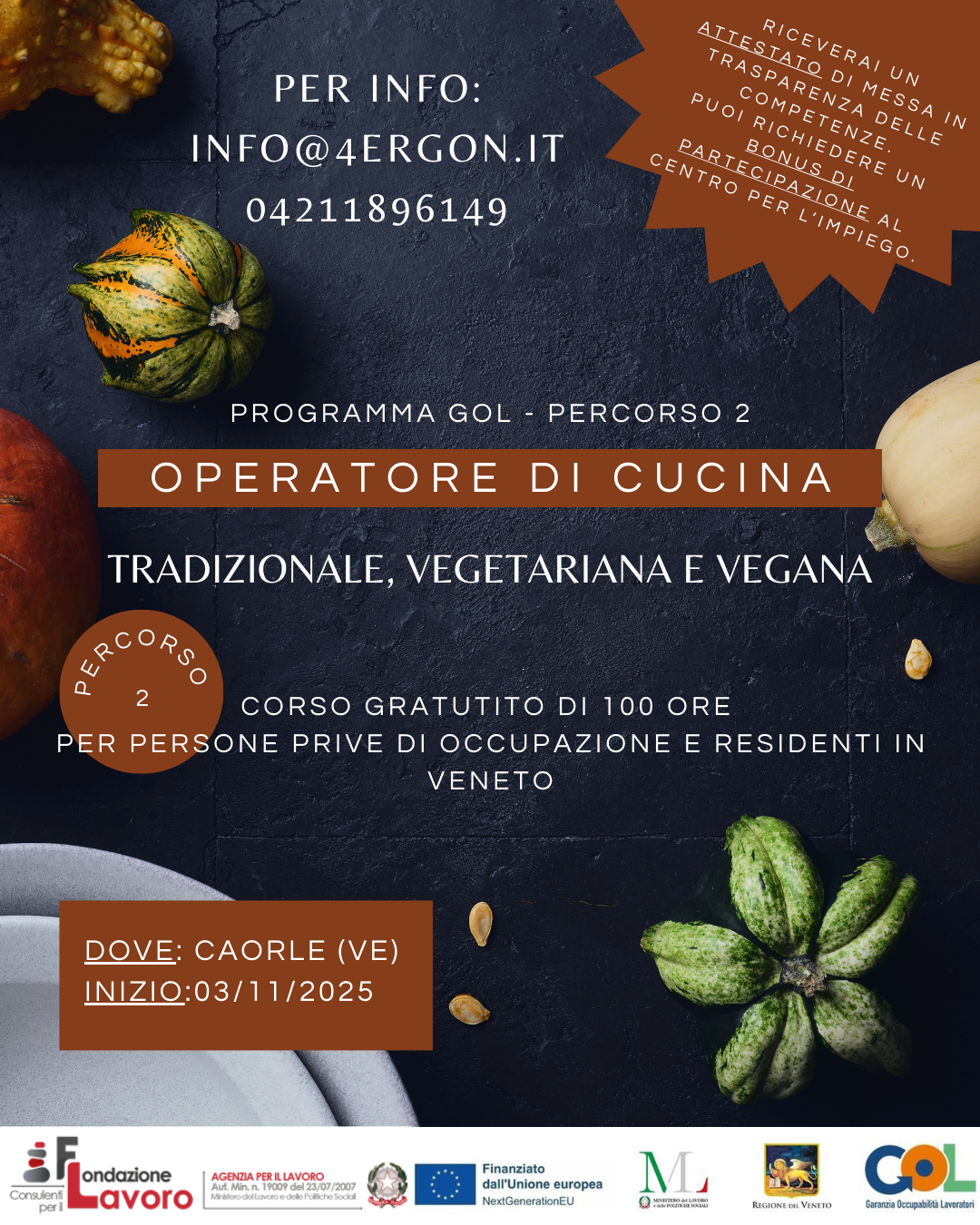 COD. GOL25-2-044/039 – UPSKILLING (RRSPP) MIRATA AL PROFILO DI OPERATORE DI CUCINA