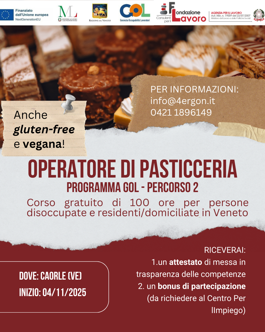 COD. GOL25-2-044/051 – UPSKILLING (RRSPP) MIRATA AL PROFILO DI OPERATORE DI PASTICCERIA