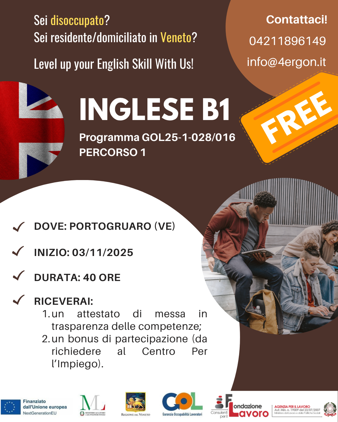 COD. GOL25-1-028/016 – Formazione di gruppo per le competenze linguistiche: INGLESE INTERMEDIO