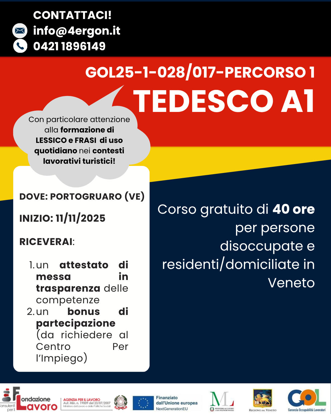 COD. GOL25-1-028/017 – Formazione di gruppo per le competenze linguistiche: TEDESCO LIVELLO BASE