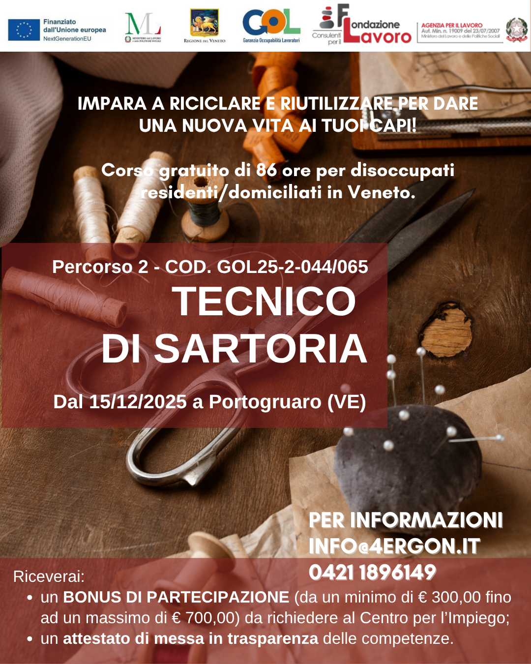 CODICE GOL25-2-044/065 – UPSKILLING (RRSPP) MIRATA AL PROFILO DI TECNICO DI SARTORIA