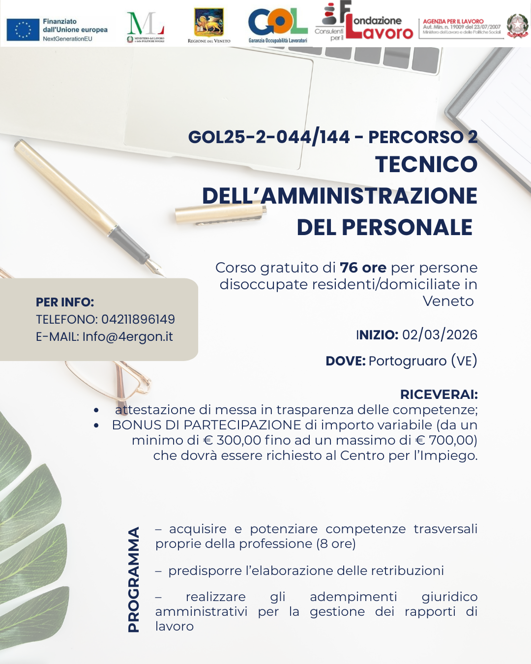 COD. GOL25-1-044/144 – Tecnico dell’amministrazione del personale