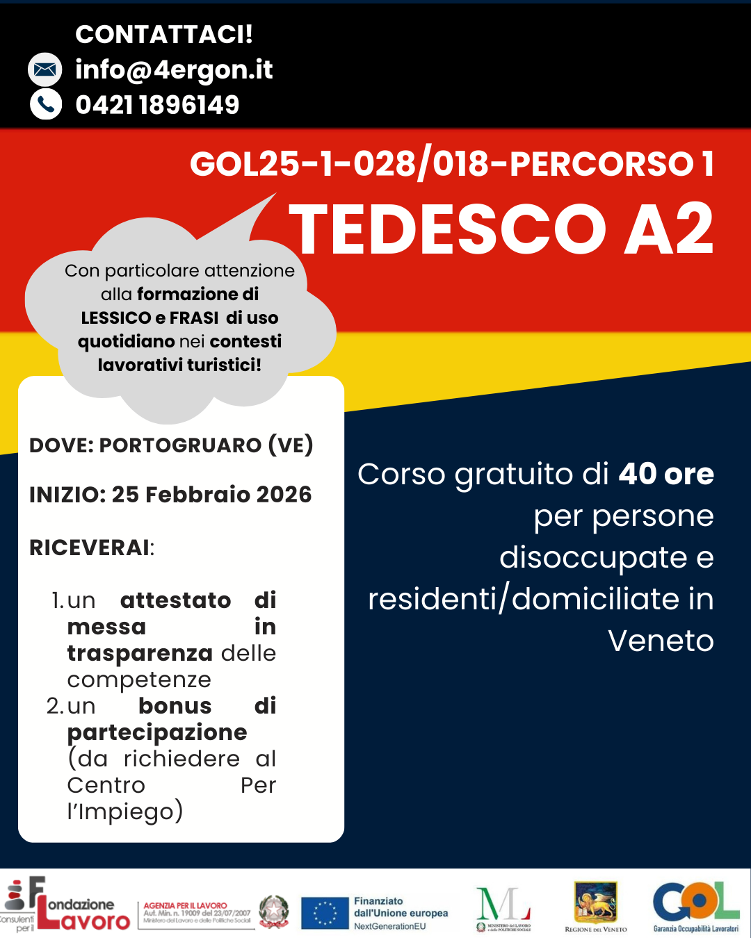 COD. GOL25-1-028/018 – Formazione di gruppo per le competenze linguistiche: TEDESCO LIVELLO A2